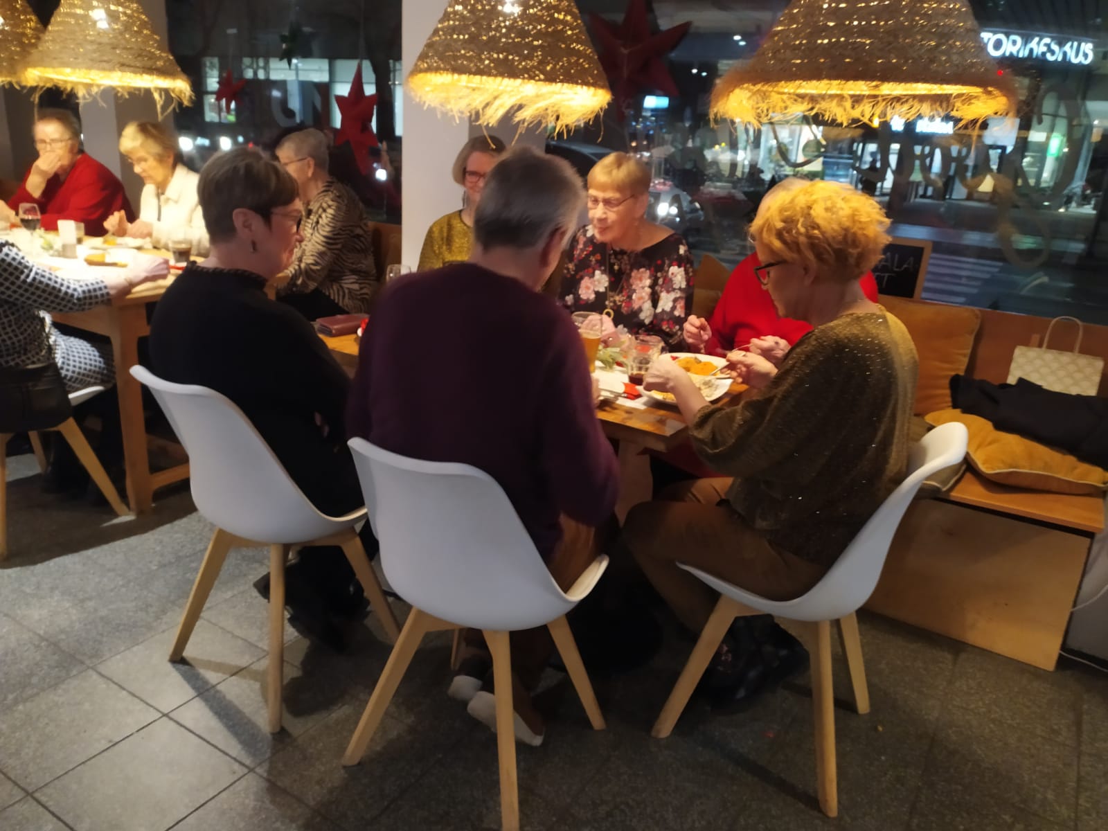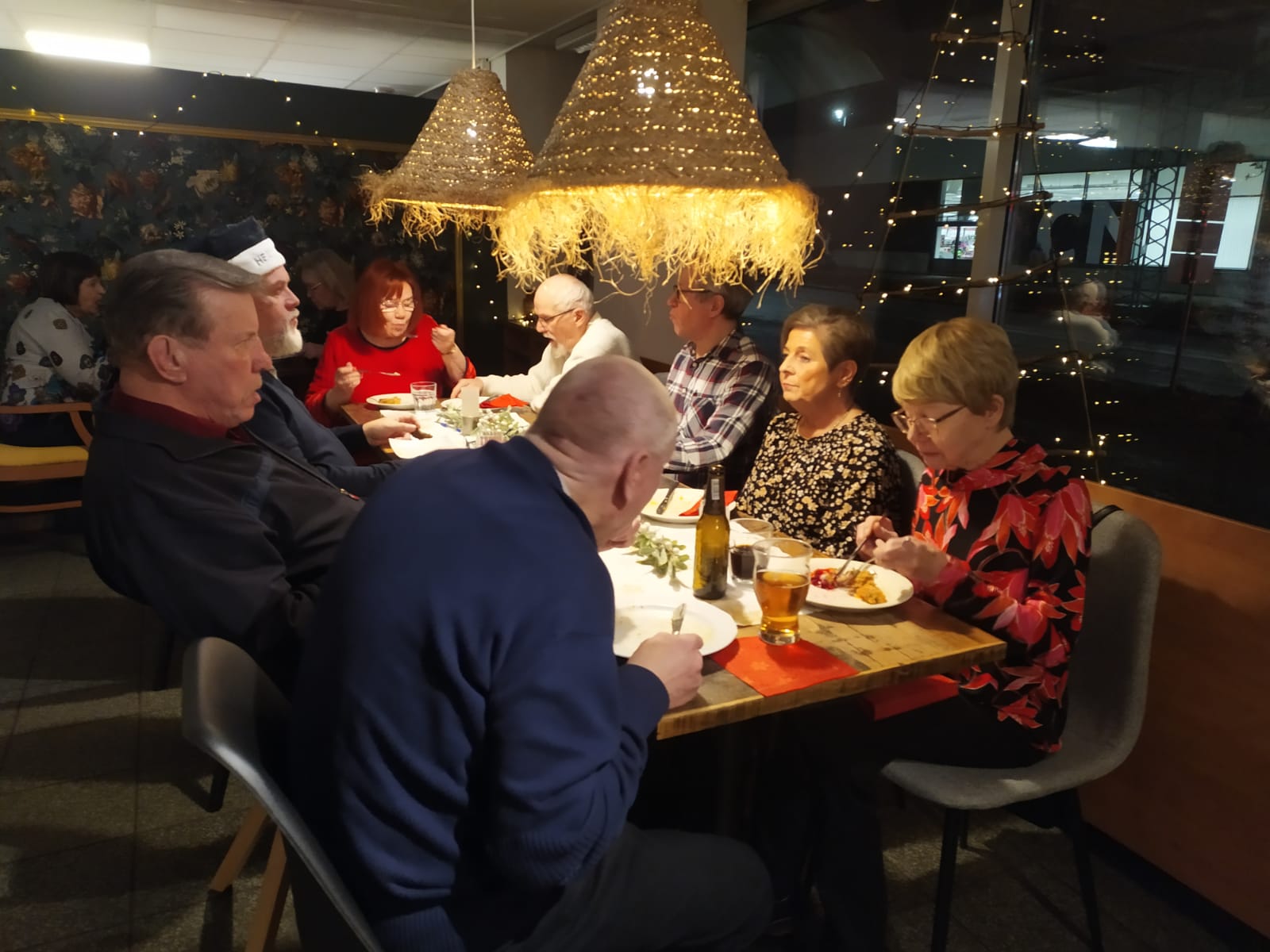 Vietimme pikkujoulua 4.12.2025 GoodMoodissa. Ruoka oli hyvää, lahjoja saatiin, tietovisailtiin ja kuultiin hauskoja tarinoita. Kuvat: Airi Taiminen, Terho Taiminen ja Timo Villberg.